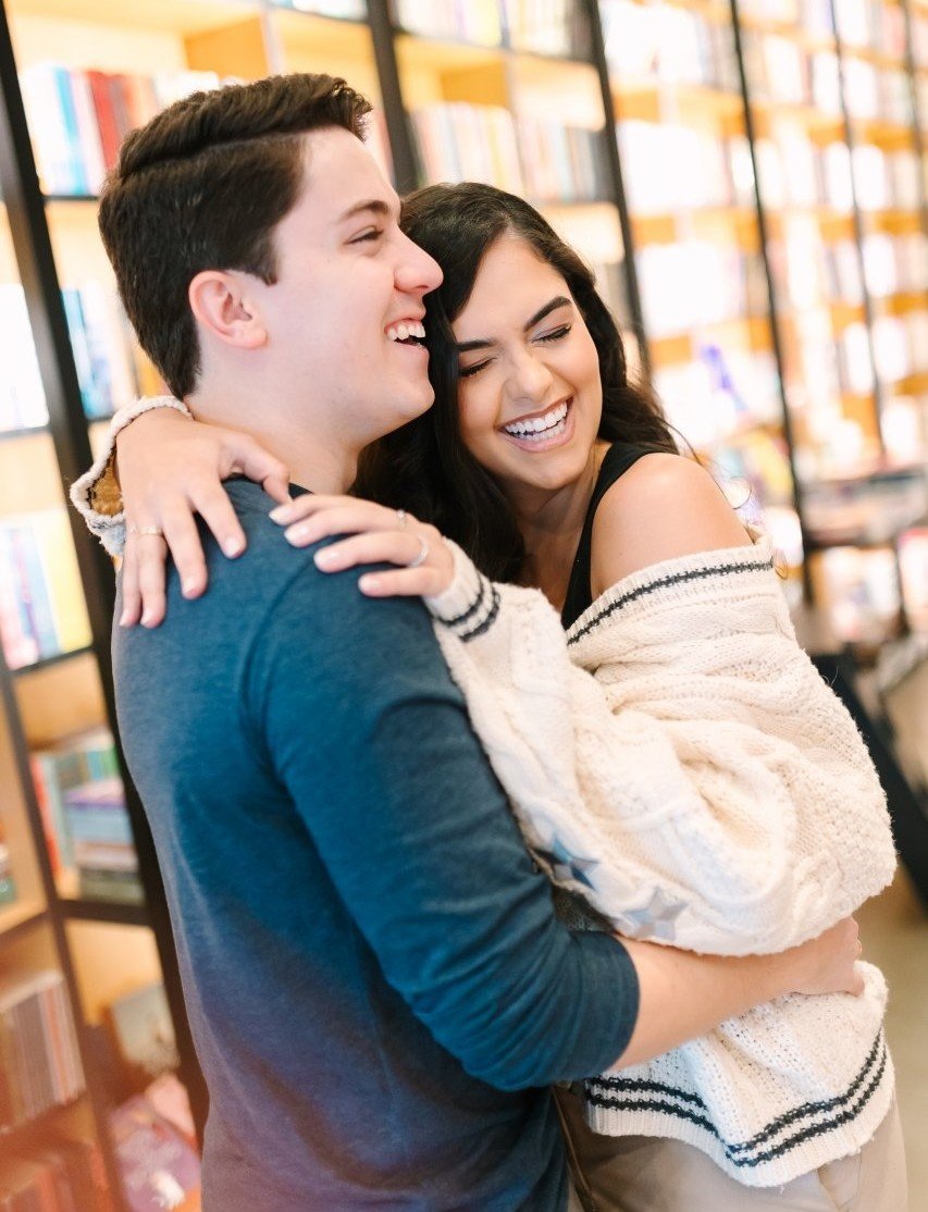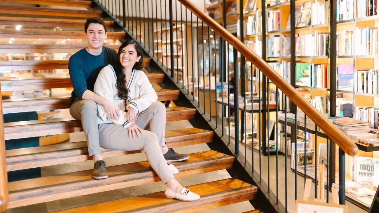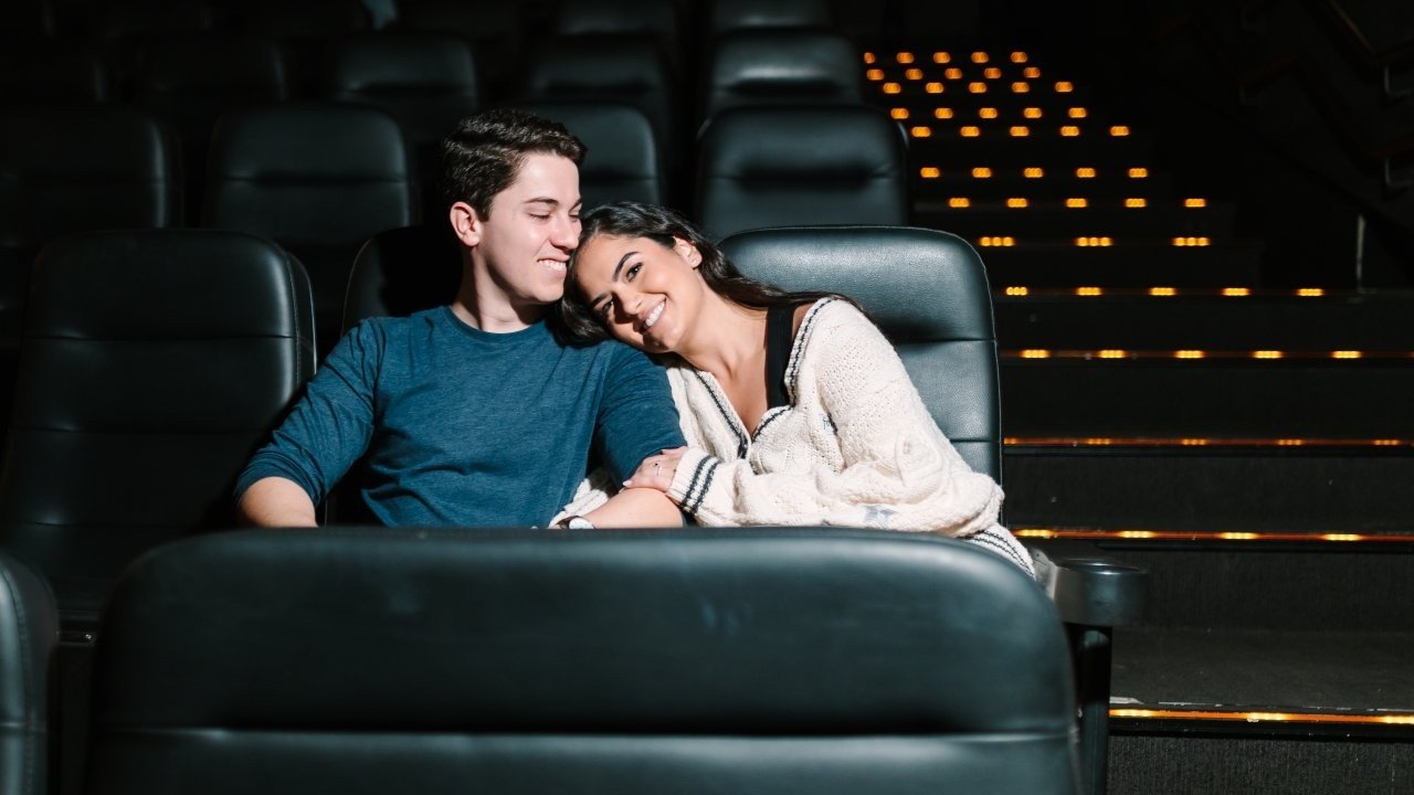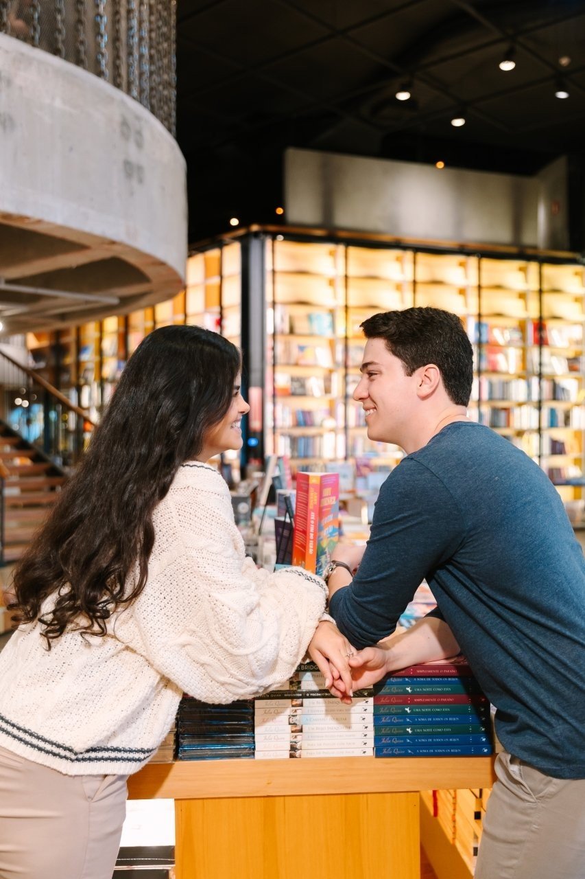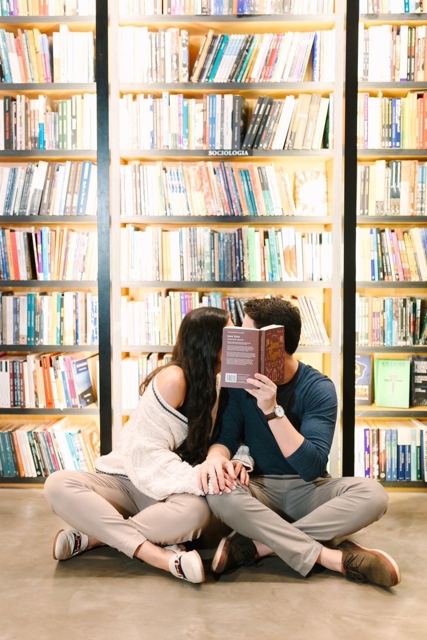 O primeiro encontro foi a cara dos dois: sessão de cinema e passeio na livraria. E foi ali, no escurinho do cinema, que aconteceu o primeiro beijo.